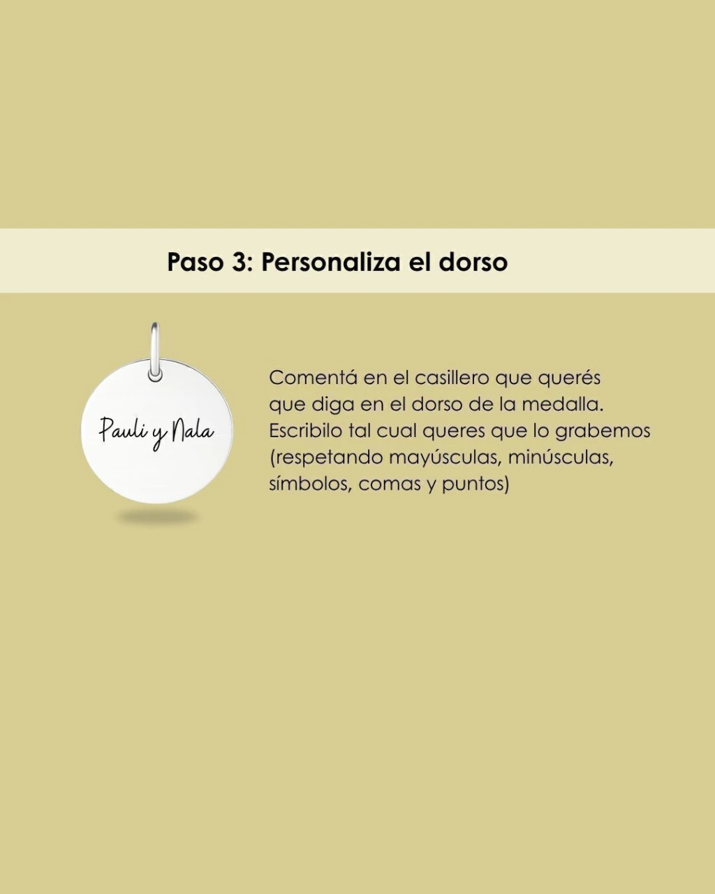 La foto muestra el collar con una cadena víbora, pero podés elegir la opción que más te guste para personalizarlo a tu estilo, asi como tambien podés elegir el tipo de letra para el grabado en el dorso.
